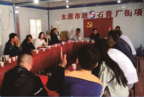 萬柏林片區臨時聯合黨支部的成立是太原市城市建設管理中心和各參建單位落實市住建委黨工委提出的“黨建進工地、引領促發展”活動的生動實踐,是不斷延伸黨建工作領域、推進項目黨建的重要手段。