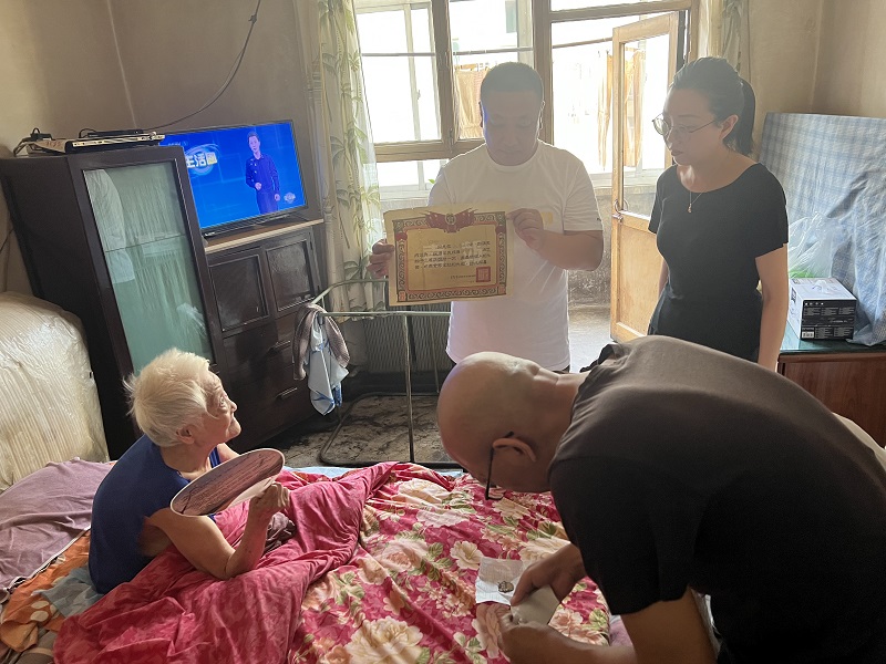 6月28日,安裝公司、物業公司聯合旱西關東社區工作人員組成慰問小組開展“慰問抗美援朝老兵遺孀 真情傳遞溫暖人心”慰問活動。活動中,慰問組一行前往抗美援朝老兵史黑則遺孀家中,詳細詢問了老人的生活和身體情況,叮囑老人要保重身體、安享晚年,并送去了牛奶、瓜果等慰問品。同時,慰問組一行還看到了保存多年的獎章及證書,大家紛紛表示要繼承革命先輩的光榮傳統,汲取紅色力量,堅定奮進步伐,用實際行動迎接黨的二十大勝利召開。