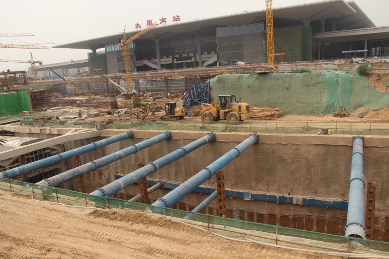 太原南站東廣場(chǎng)配套路網(wǎng)工程位于太原南站東側(cè),西起太原火車南站東出口,東至太行路,南至車站南街以南200米,北至南中環(huán)街,共包括10條市政道路、五條高架匝道引橋及所屬沿線的照明、管線等配套設(shè)施,同時(shí)外加2條貴賓小路。其中,北營(yíng)北路包含地下通道及地面道路兩部分,地下通道全長(zhǎng)1124米。該工程作為省級(jí)重點(diǎn)工程項(xiàng)目,受到了社會(huì)各界的重點(diǎn)關(guān)注和上級(jí)領(lǐng)導(dǎo)的高度重視,于2017年4月開工建設(shè),由八公司負(fù)責(zé)承建。施工中的重難點(diǎn)在于北營(yíng)北路地下通道最深處達(dá)21米的深基坑施工,項(xiàng)目部采用混凝土灌注樁加內(nèi)支撐的模式,第一 道內(nèi)支撐為混凝土支撐,其余為多道鋼支撐,保證基坑壁穩(wěn)定性。地下通道施工時(shí),該通道頂板為折線拱形頂板,澆筑難度較大,項(xiàng)目部組織技術(shù)人員根據(jù)工程特點(diǎn),研究出一種全新的支模方法,利用插模板的方式進(jìn)行分段澆筑,在確保工程質(zhì)量的同時(shí),保證施工進(jìn)度。同時(shí),由于該工程情況復(fù)雜,項(xiàng)目部技術(shù)人員從“細(xì)節(jié)”入手,及時(shí)發(fā)現(xiàn)問(wèn)題,并反復(fù)溝通協(xié)調(diào),提出了合理化建議,確保了工程有序推進(jìn)。在2019年的施工過(guò)程中,集團(tuán)公司組織五家施工單位,60多臺(tái)施工機(jī)械、130多名施工人員,經(jīng)過(guò)21天的奮戰(zhàn),協(xié)作完成10條道路從路基、水穩(wěn)到瀝青攤鋪的施工任務(wù),其中瀝青攤鋪面積達(dá)到7萬(wàn)平方米。全體參建人員在太原城市建設(shè)的“戰(zhàn)場(chǎng)”上,傾情演繹著市政鐵軍的“速度與激情”,太原南站以嶄新的面貌迎接“二青會(huì)”的八方來(lái)客。