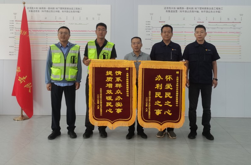 8月29日,太原市政集團(tuán)收到太原市萬(wàn)柏林區(qū)小井峪社區(qū)衛(wèi)生服務(wù)中心送來(lái)的 “情系群眾辦實(shí)事 提質(zhì)增效暖民心”錦旗,感謝太原市政集團(tuán)在迎澤大街(西段)地下管網(wǎng)更新改造工程以過(guò)硬的工程質(zhì)量和高效的推進(jìn)速度,高標(biāo)準(zhǔn)開(kāi)展施工任務(wù),極大改善附近居民的出行條件和生活環(huán)境。