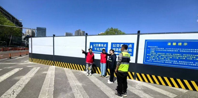 施工以來,集團公司全程安排專人值守地鐵口交通導行,多舉措升級現場安全防護設施——開辟行人安全通道,協調劃定“公交專用通道”,在井蓋四周設置緩坡與明黃警示帶,為圍擋加裝柔和燈帶……以細微處的貼心舉措,實現“施工便民不擾民”。
