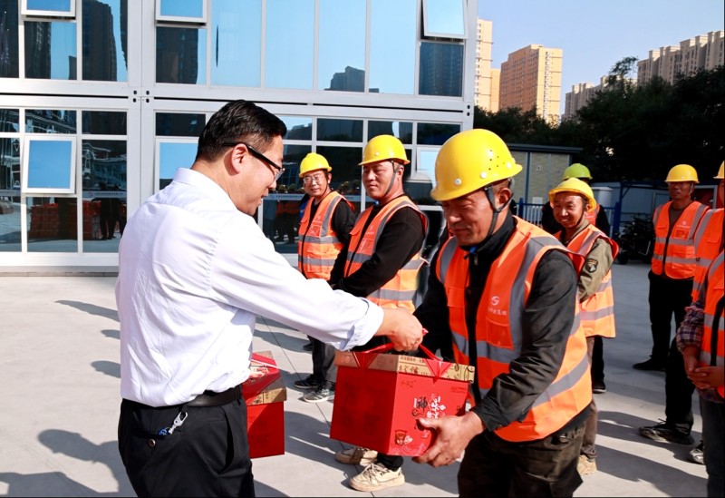 活動中,市總工會領(lǐng)導(dǎo)與一線施工人員進(jìn)行了親切交談,仔細(xì)詢問項目進(jìn)展和員工生活保障情況,并為大家送來了月餅、豬肉等慰問品。