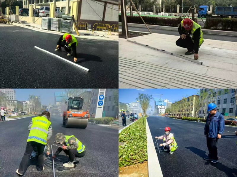 理論與實踐緊密結合,方能彰顯力量。各在建項目部積極響應,組建由項目經理掛帥,工長、質檢員協同作戰的質量檢查小組。他們攜帶測溫儀、塞尺、鋼直尺等專業工具,深入施工現場,對道路面層與工程材料展開“地毯式”排查,從路面平整度到材料規格,不放過任何細微之處,將質量管控觸角延伸至施工現場的每一角落,用實際行動守護工程質量的“生命線”。