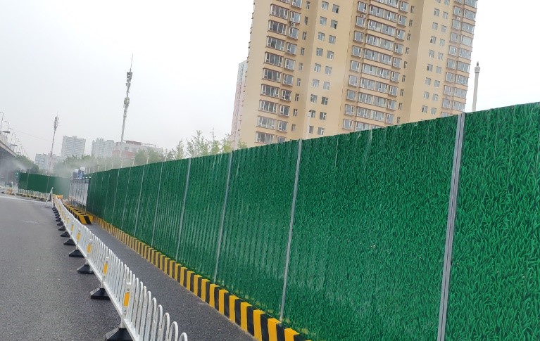 由于施工場(chǎng)地臨近居民區(qū),項(xiàng)目部抓實(shí)抓牢現(xiàn)場(chǎng)安全施工管理,重點(diǎn)部署警示牌、施工圍擋、灑水降塵等設(shè)施,積極營(yíng)造安全文明施工環(huán)境。在溝槽開挖路段,統(tǒng)一制作標(biāo)準(zhǔn)防護(hù)圍欄,懸掛警示標(biāo)識(shí),嚴(yán)格控制人員出入施工場(chǎng)地;在臨近居民區(qū)路段,修建便民通道,并在出口處設(shè)置警示欄桿,懸掛安全警示牌,張貼夜間反光貼,保障居民出行安全;在未完全封閉施工路段,項(xiàng)目部采用活動(dòng)鐵馬和警戒線進(jìn)行隔離,夜間路口放置爆閃燈,并設(shè)專人進(jìn)行監(jiān)管,保證施工現(xiàn)場(chǎng)安全有序;同時(shí),項(xiàng)目部在東中環(huán)全線圍擋處加設(shè)噴淋設(shè)施,對(duì)所有裸露作業(yè)面使用綠網(wǎng)進(jìn)行覆蓋并定時(shí)灑水降塵,營(yíng)造綠色安全施工環(huán)境。