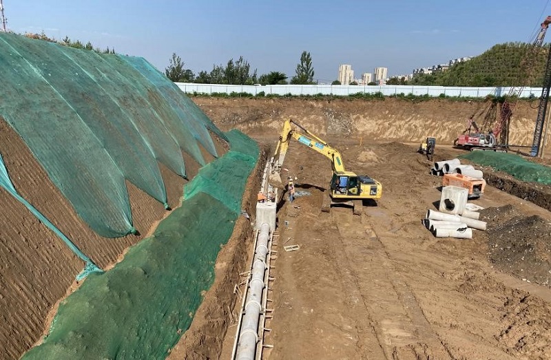 該工程雨污水管道、電力隧道的部分管線(xiàn)為深溝槽作業(yè),溝槽平均深度為4米,最深處達(dá)6米。同時(shí),該工程部分路段涉及挖方量大的情況,這些都增加了施工難度和危險(xiǎn)系數(shù)。項(xiàng)目部技術(shù)人員根據(jù)施工現(xiàn)場(chǎng)實(shí)際情況,共同研究應(yīng)對(duì)措施,制定了《深溝槽開(kāi)挖專(zhuān)項(xiàng)方案》和《大挖方邊坡修整、支護(hù)方案》,采取了分級(jí)放坡開(kāi)挖和邊支護(hù)邊開(kāi)挖的方式,有效防止兩側(cè)土體的塌落;在挖方路塹施工時(shí),及時(shí)掛網(wǎng)噴漿,有效維護(hù)了邊坡穩(wěn)定;在開(kāi)挖坡頂設(shè)置了截水溝,有效防止雨水的溝槽和邊坡的沖刷和浸泡,增加了施工的安全系數(shù),切實(shí)保證了在溝槽和路塹開(kāi)挖段內(nèi)作業(yè)機(jī)械和人員的安全。