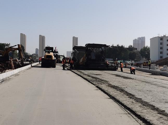 為趕在雨水來臨前完成節(jié)點目標(biāo),10月1日至2日,八公司承建的迎澤大街東延(雙塔北路-東中環(huán))建設(shè)工程經(jīng)過40余名施工人員,近10臺機械的全力奮戰(zhàn),4000多噸、長度360米的西段機動車道水穩(wěn)攤鋪圓滿完成。