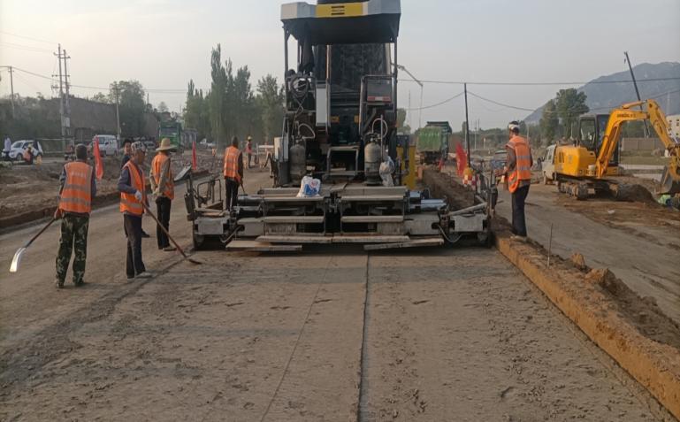太忻大道第六標段全線長3.68公里,鋪筑平均寬度為11.5米。租賃公司在鋪筑現(xiàn)場配備三臺攤鋪機,兩臺壓路機,一臺平地機,一臺清掃機。自4月21日鋪設作業(yè)開始,已連續(xù)施工作業(yè)41天,截至6月1日,水穩(wěn)攤鋪底層已完成全路段的70%,上層已完成50%。