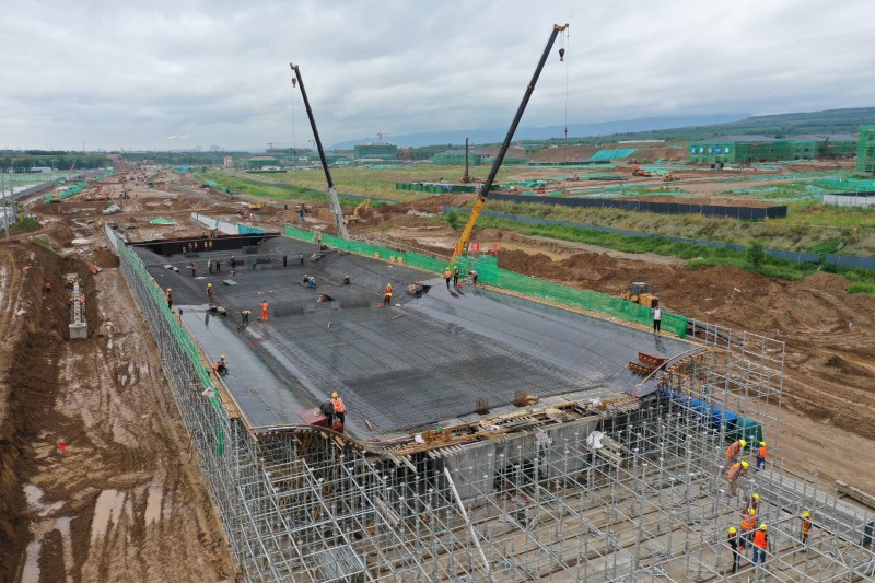 南內環街東延建設工程起點為東中環,終點至東山大道,全長3.6公里,規劃紅線寬50米,建設內容包括道路、橋涵、排水、電力等,于2021年7月開工建設,由四公司負責承建。在該工程下穿東山過境高速的通道施工中,全體參建人員將精細化施工貫穿全過程,針對此次修建下穿東山過境高速為四孔現澆混凝土箱涵的實際情況,項目部采用灰土擠密樁+1米厚的三七灰土墊層完全消除地基濕陷性,并及時進行壓實度檢測;編制了《模板支撐體系安全專項施工方案》并組織專家論證,通過采用盤扣式支架搭設架體,驗收合格后進行模板安裝、綁扎鋼筋、波紋管定位、穿束鋼絞線等各道工序,采用控制應力和伸長值進行雙控,保證每一束鋼絞線在張拉過程中符合設計要求;施工人員規范操作、全程跟進,利用振搗棒進行振搗,澆筑完成后采用覆蓋養護,保證混凝土澆筑質量。同時,項目部主動出擊、不等不靠,啟動“5+2”“白加黑”連軸轉模式,利用工序交叉作業,同步推進施工進度,在通道施工的同一工作面展開搭設支架、混凝土澆筑等作業,確保各工序按時間節點順利推進。項目部對各道工序都嚴苛以待、精益求精,高標準完成施工任務,以匠心筑精品,向太原市民交上一份完美的答卷。