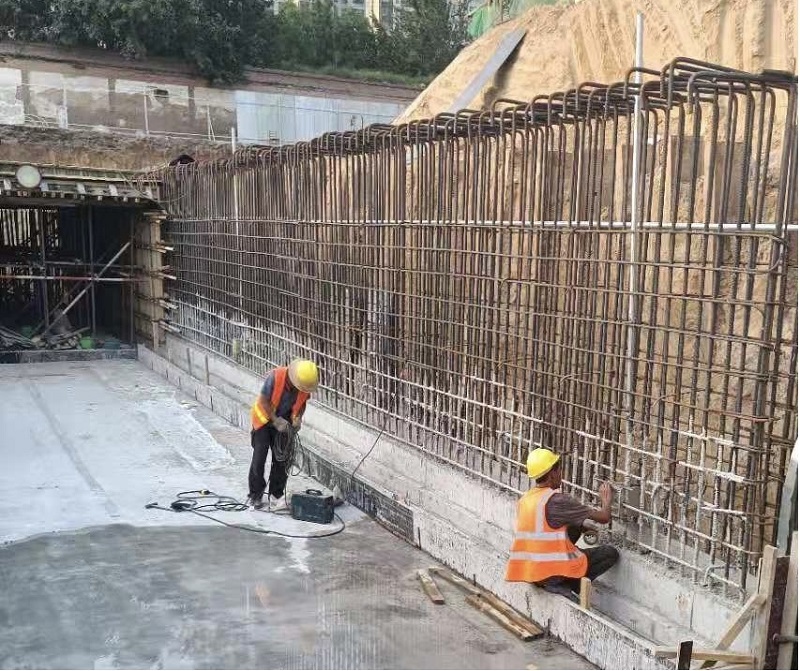在K1+030處施工時(shí),南北方向有一條地下人行通道,項(xiàng)目部需要在通道內(nèi)安裝疏散指示燈、應(yīng)急指示燈、熒光燈等。在施工過程中,項(xiàng)目部緊跟道路施工方的施工進(jìn)度,當(dāng)?shù)缆肥┕し侥竟ぶ鹉>邥r(shí),項(xiàng)目部相關(guān)施工人員需要立即將鋼管預(yù)埋進(jìn)鋼筋架中,這就需要項(xiàng)目部和道路施工方緊密配合,施工員每日緊盯施工進(jìn)度,見縫插針式地完成管線預(yù)埋工序,為后續(xù)施工奠定了基礎(chǔ)。由于前期設(shè)計(jì)圖與施工實(shí)際情況有出入,無法確定電源箱的具體位置,現(xiàn)場(chǎng)技術(shù)負(fù)責(zé)人多次與設(shè)計(jì)院聯(lián)系,經(jīng)過不斷實(shí)地勘察、測(cè)量、畫圖對(duì)照,最終確定電源箱的實(shí)際位置,并在道路上增加了多條鋼管過路,確保送電時(shí)萬無一失。
