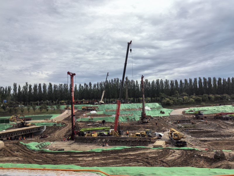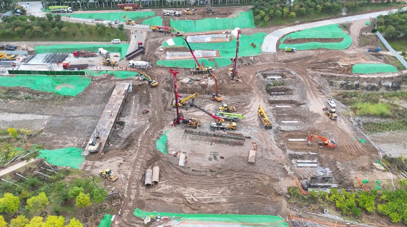 幸福橋設(shè)計為一座跨汾河大橋。項目部根據(jù)工程特點,將工程劃分為東西兩個工區(qū),分解關(guān)鍵節(jié)點工期目標(biāo),拆分成一般節(jié)點工期,再細(xì)化為每周、每日的進(jìn)度計劃,層層細(xì)化,層層落實。同時,項目部安排道排、橋梁等專業(yè)施工隊,通過組織流水施工作業(yè),減少交叉作業(yè)影響,保證各工作面既滿負(fù)荷工作,又不互相干擾,加快施工進(jìn)度。由于該工程施工范圍位于汾河兩岸,地質(zhì)情況比較復(fù)雜,地下水位高,地下土質(zhì)為卵石,開挖難度較大,施工人員先利用螺旋鉆機進(jìn)行引孔,再采用“止水鋼板樁+拉森樁”的方式,起到有效防水和支護(hù)的效果。在進(jìn)行橋梁基礎(chǔ)施工時,項目部采用正循環(huán)鉆孔灌注樁的施工工藝進(jìn)行施工作業(yè),正循環(huán)鉆孔通過水泵壓送泥漿,從鉆桿柱中心進(jìn)入孔底并返出,能夠快速完成鉆孔作業(yè),操作方式簡便,降低了施工難度?,進(jìn)一步加快施工進(jìn)度。針對工程重點難點,項目部還專門制定了《深基坑安全專項施工方案》和《高大模板支撐體系安全專項施工方案》,邀請專家進(jìn)行論證,確保重點環(huán)節(jié)的施工質(zhì)量。
