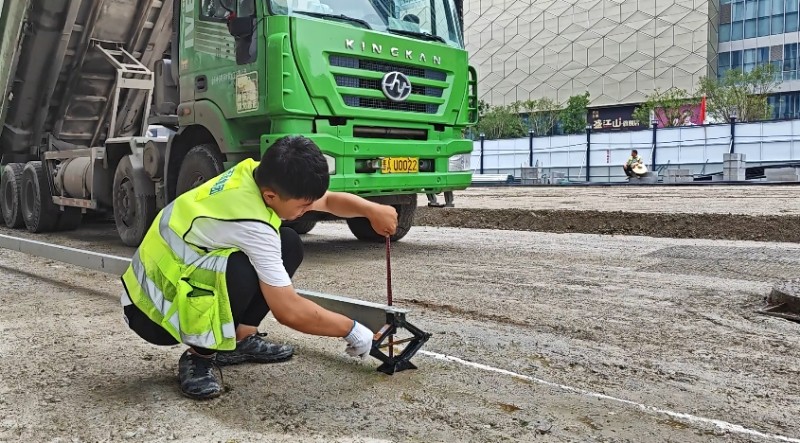 “以工匠精神,打造城市街道的靚麗名片”。項(xiàng)目部對(duì)所有進(jìn)場花崗巖板材進(jìn)行逐塊檢驗(yàn),確保板材表面平整度、缺陷指標(biāo)符合設(shè)計(jì)要求,讓石材自帶“高顏值”。施工中,施工人員嚴(yán)格控制混凝土基層表面平整度偏差,確保壓實(shí)度達(dá)到95%以上;鋪貼階段采用“試鋪—校正—精鋪”的工藝流程,嚴(yán)格按配比配制干硬性水泥砂漿;鋪貼時(shí)使用橡皮錘從板材中心向四周均勻輕擊,確保砂漿飽滿密實(shí),相鄰板材高差控制在正負(fù)1毫米以內(nèi),接縫寬度保持均勻一致。鋪裝完成后利用專用填縫劑進(jìn)行嵌縫處理,并實(shí)施保濕養(yǎng)護(hù),確保鋪裝層達(dá)到平整美觀、堅(jiān)固耐用的質(zhì)量要求。