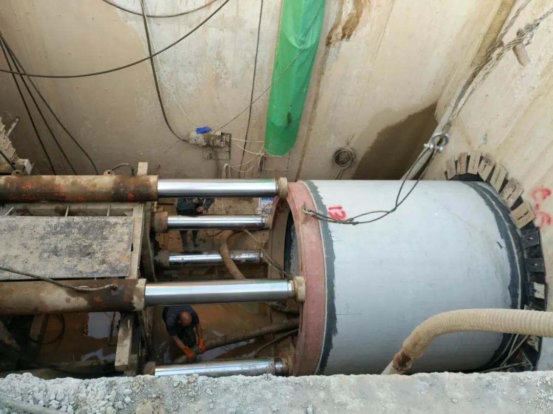 該工程全線位于尖草坪區新店村,為整個北線防洪工程的起點,全長700米,其中230米為頂管工程,470米為開挖工程。施工中,面對拆遷進展緩慢的情況,項目部不等不靠,主動作為,積極與各產權單位及設計部門聯絡溝通,加快拆遷進度,最終將施工管道位置調整到位于河道中間,順利解決拆遷問題;開挖過程中,因河道內淤泥量大、水位高,且清淤后仍有大量鐵渣不易清理,每天只能開挖和吊裝三根管,項目部快速制定施工方案,采用“挖機+炮錘”的開挖方式,先使用炮錘破碎鐵渣,在利用挖機進行開挖,快速推進開挖進度,為后續施工贏得更多時間;在105井頂管過程中,因其前方有礦渣層導致推進受阻,項目部在保證頂管持續頂進的同時,采用挖機將礦渣層快速清除,防止了誤工情況發生。