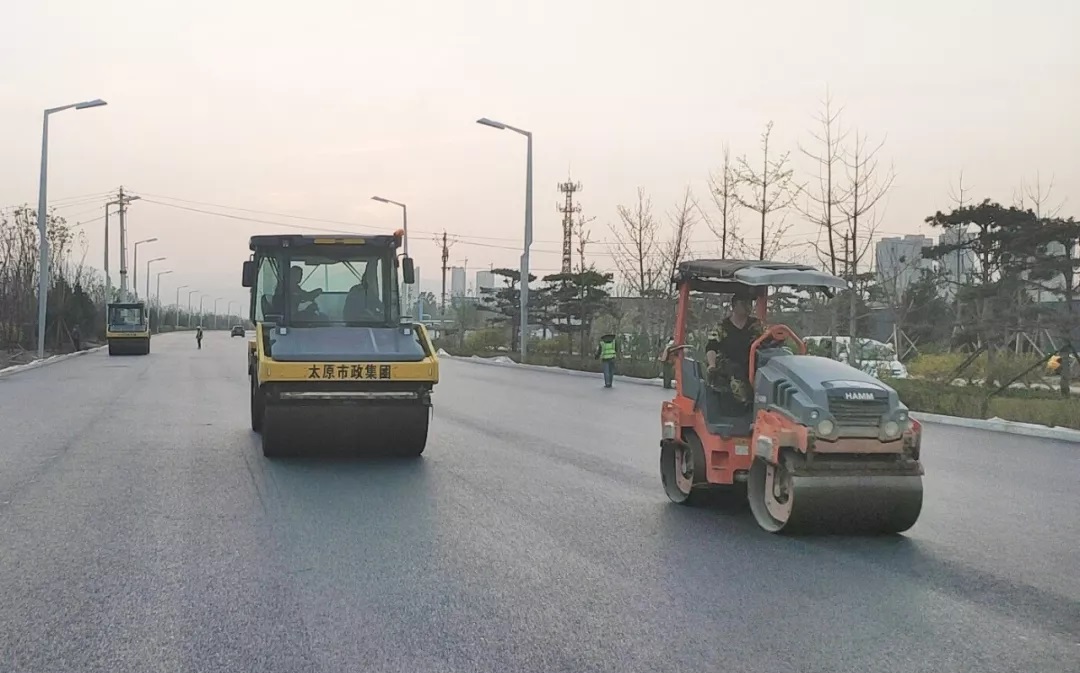 太原市政建設集團有限公司蒙山大街道排工程機動車道與非機動車瀝青上面層已鋪筑完成
