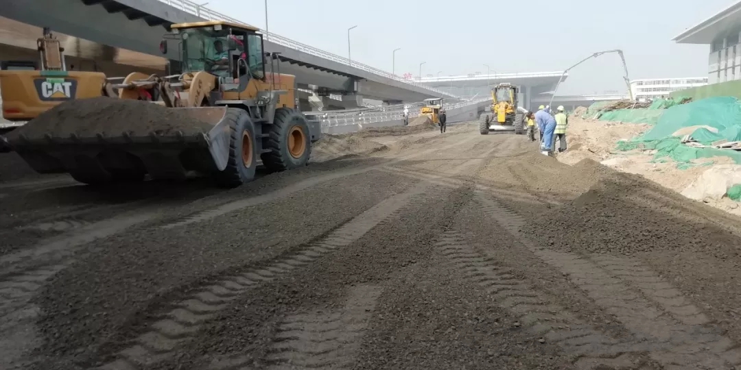 太原市政建設集團有限公司太原南站東廣場配套路網工程龍堡路、規劃一路、F1路、F2路等10條道路水穩鋪設已全部完成