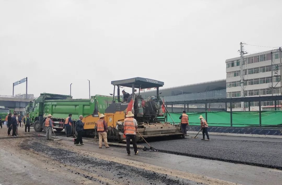 太原市政建設集團有限公司太原南站東廣場配套路網工程龍堡路、光明東街等8條道路下面層瀝青已全部鋪設完成