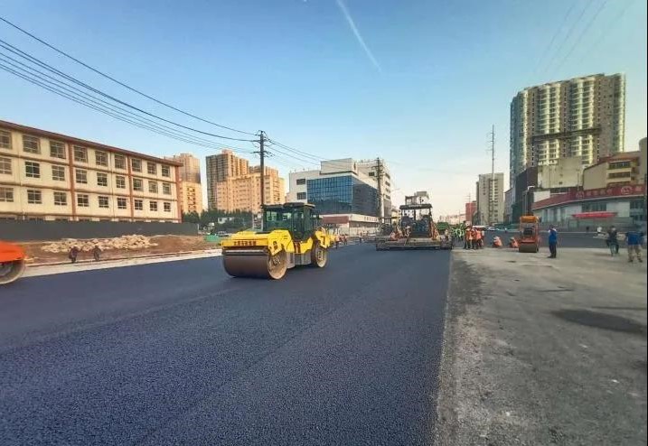 解放路改造工程二標段瀝青混凝土下面層鋪設已過半