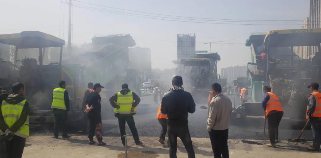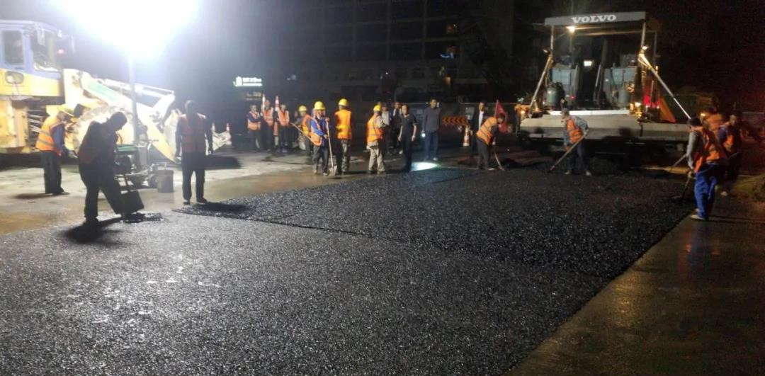 7月8日晚10點,在解放路改造工程與迎澤大街銜接路口的施工現場,新壓實的瀝青攤鋪層正冒著熱氣,伴著“呲呲”的響聲,四周都是高溫彌漫的層層熱浪,一臺攤鋪機和兩臺壓路機剛剛順利完成一整天的工作。駕駛員們臉頰上正大滴大滴流著汗水,脖子上掛著的毛巾已經濕透,仿佛耳邊始終回響著機械的轟鳴聲……還沒有休息的他們,剛端起一杯水,就接到該工程夜間施工的任務。7月9日凌晨2點,工地熱火朝天,機器轟鳴聲不絕于耳,一車車瀝青混合料一字排開,有序卸入攤鋪機內,機械駕駛員們目光堅毅,一絲不茍地操作機械進行鋪瀝青、壓實路面……攤鋪機操作手正謹慎控制著機械向前緩步行進,他時不時低頭觀察路面情況,確保攤鋪層的平整與均勻度。同時,趁著瀝青料的余溫,壓路機緊隨其后,緊跟慢壓,保證壓實壓密面層瀝青。這只是路面施工組工作的縮影,在解放路、水馬路、鐘樓街、植物園等工地都能看到他們忙碌的身影。