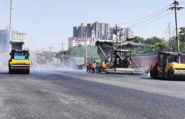 8月13日早上9點,隨著攤鋪機(jī)的隆隆聲響,二公司承建的解放路改造工程二標(biāo)段開始中面層瀝青混凝土的攤鋪工作。在施工現(xiàn)場,攤鋪機(jī)齊頭并進(jìn),壓路機(jī)來回穿梭,運料車在工作人員的指揮下,正在有條不紊地進(jìn)行作業(yè)。項目部全體施工人員分工明確,測量人員手持水準(zhǔn)儀,對路面標(biāo)高精準(zhǔn)測量,提前測算出鋪設(shè)厚度;質(zhì)檢員頭頂烈日,用測溫計等設(shè)備,監(jiān)督鋪設(shè)的溫度和厚度,并對瀝青樣品抽樣檢驗,精細(xì)把控工程質(zhì)量;現(xiàn)場施工人員充當(dāng)臨時交通員,疏通運料車,維護(hù)周邊行人秩序,確保攤鋪工作的順利進(jìn)行;材料員盯守施工現(xiàn)場,隨時聯(lián)系供料方,確保瀝青料的及時供應(yīng)……